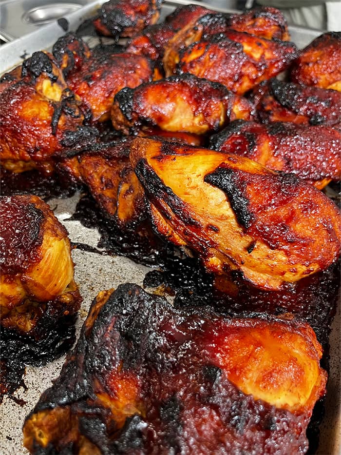- Grilled chicken filet, steamed brown rice, roasted squash, fresh apple slices, and milk